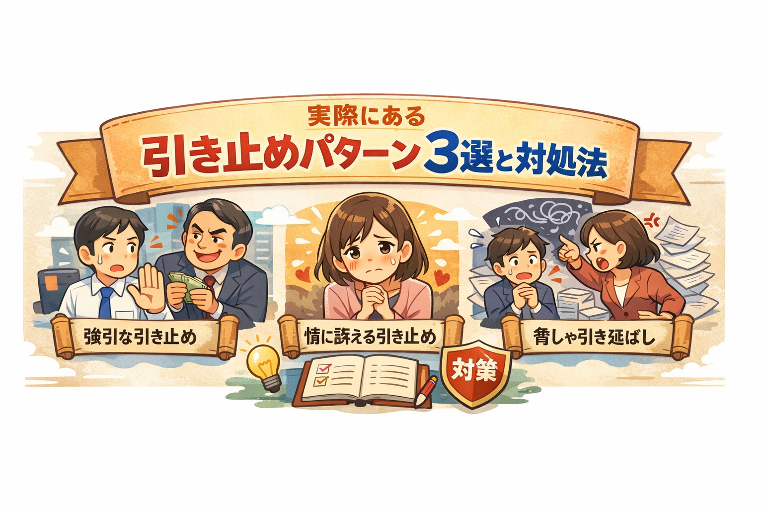 引き止め方のパターンを事前に知っておくことで、冷静に対応できます。よくある3パターンと、その対処法を押さえておきましょう。