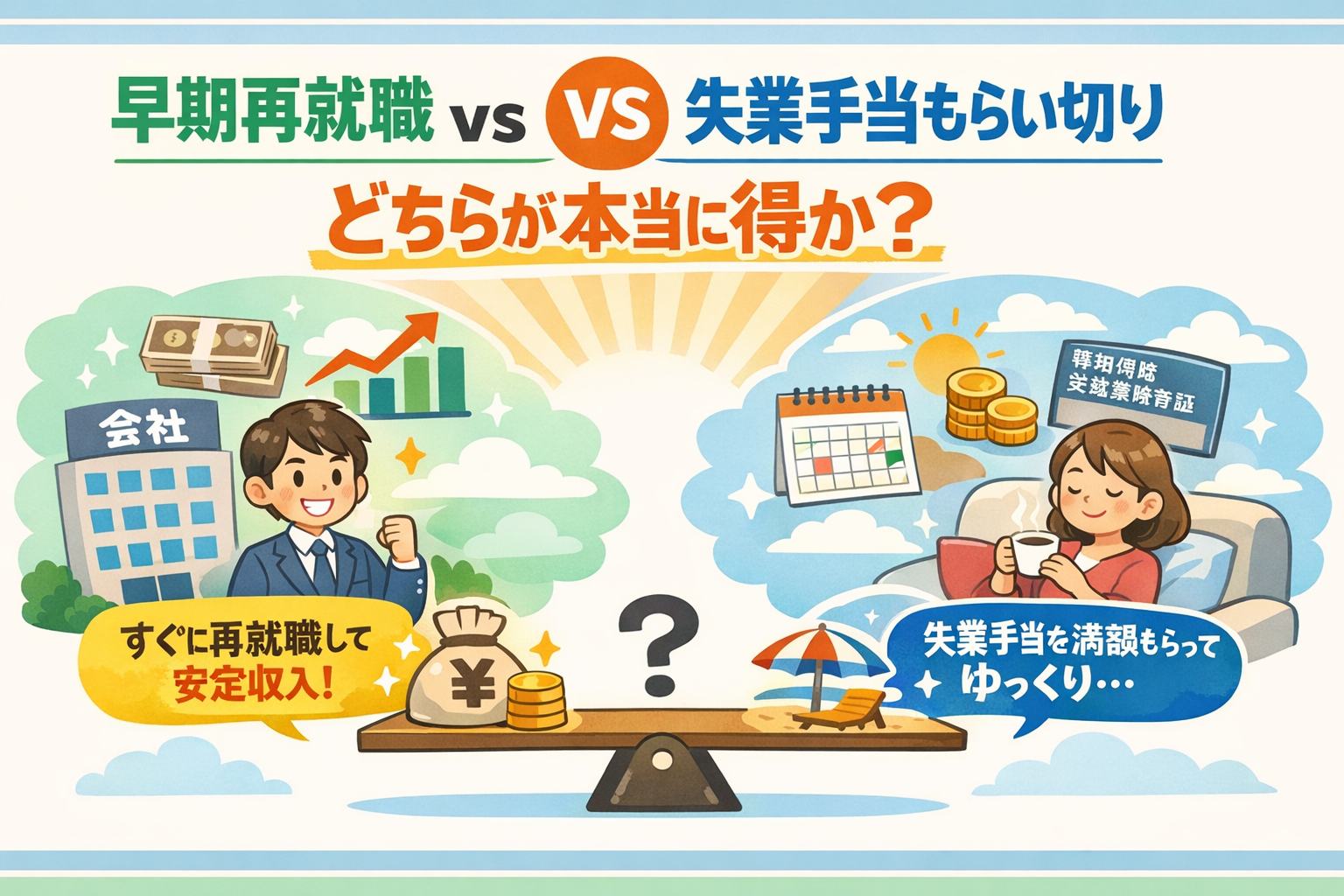 早期再就職 vs 失業手当もらい切り、どちらが本当に得か?