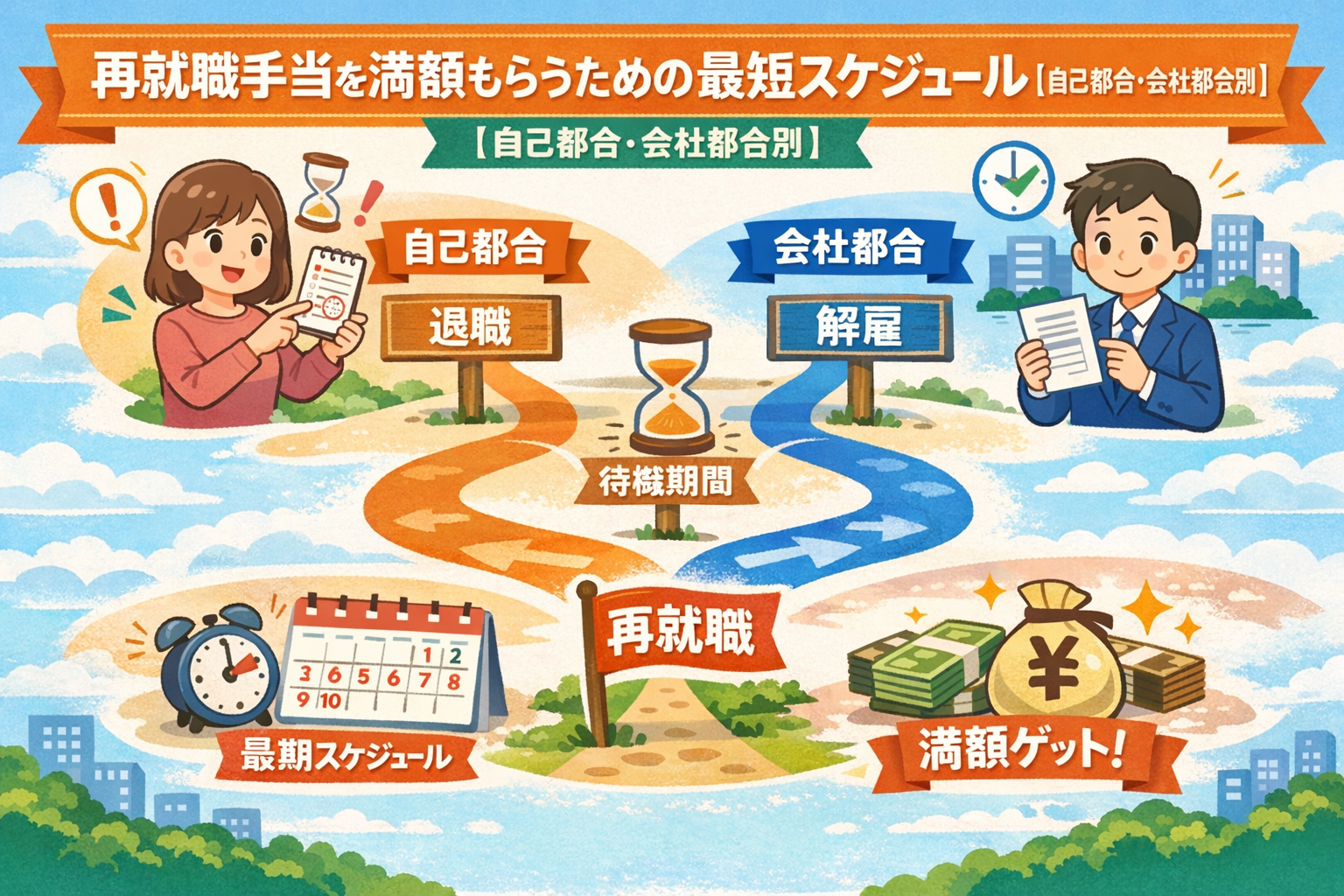 再就職手当を満額もらうための最短スケジュール【自己都合・会社都合別】