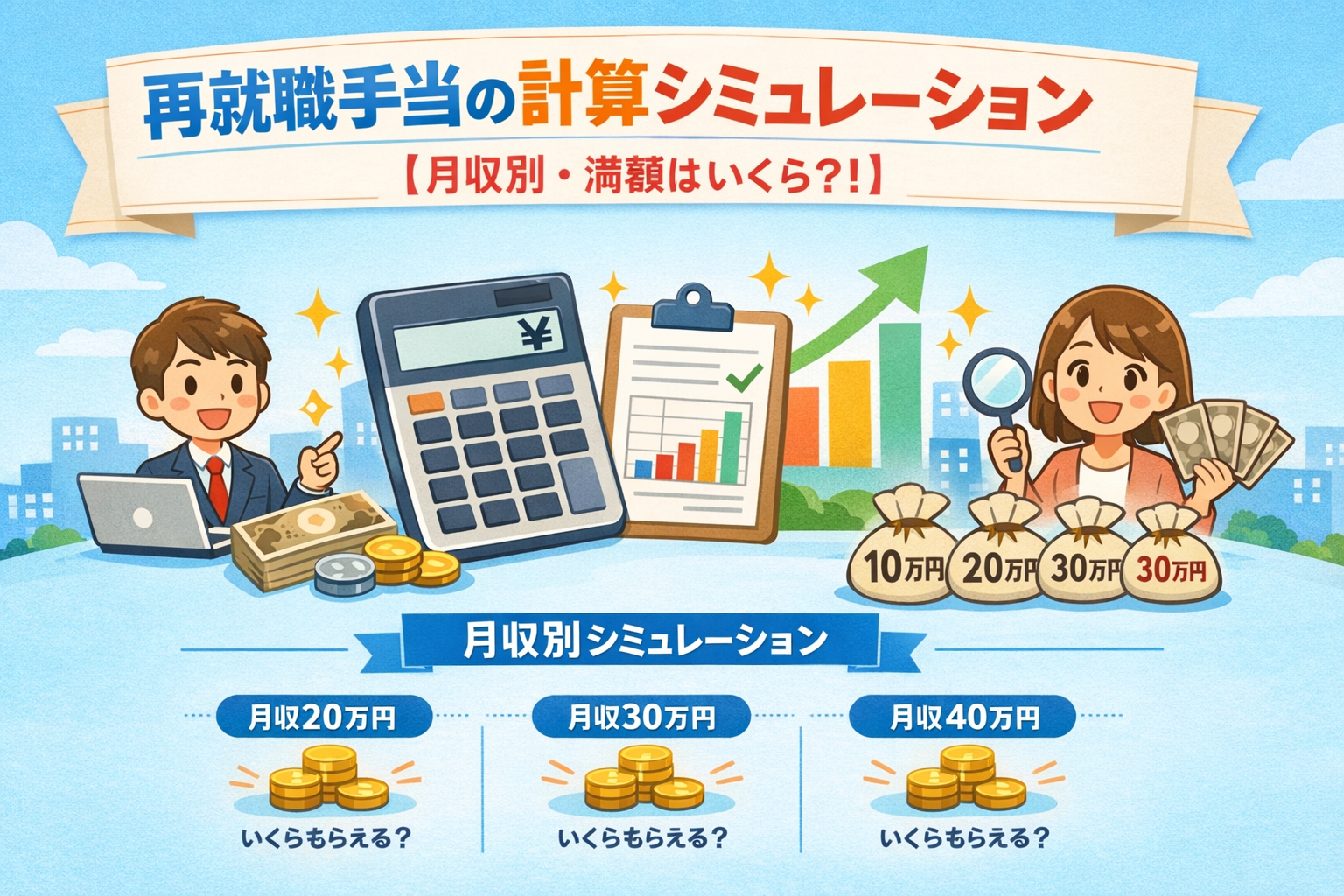 再就職手当の計算シミュレーション【月収別・満額はいくら?】