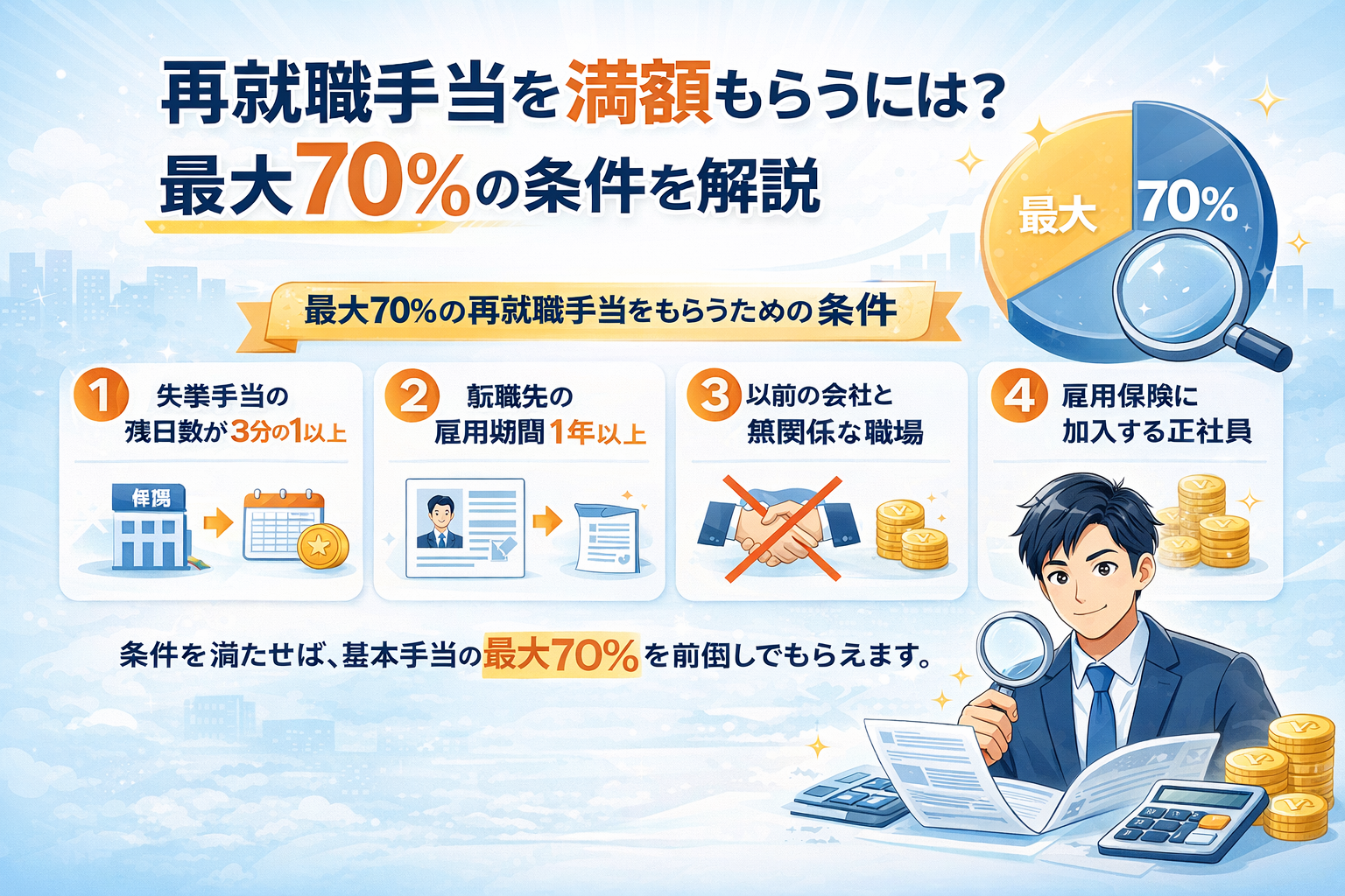再就職手当を満額もらうには?最大70%の条件を解説