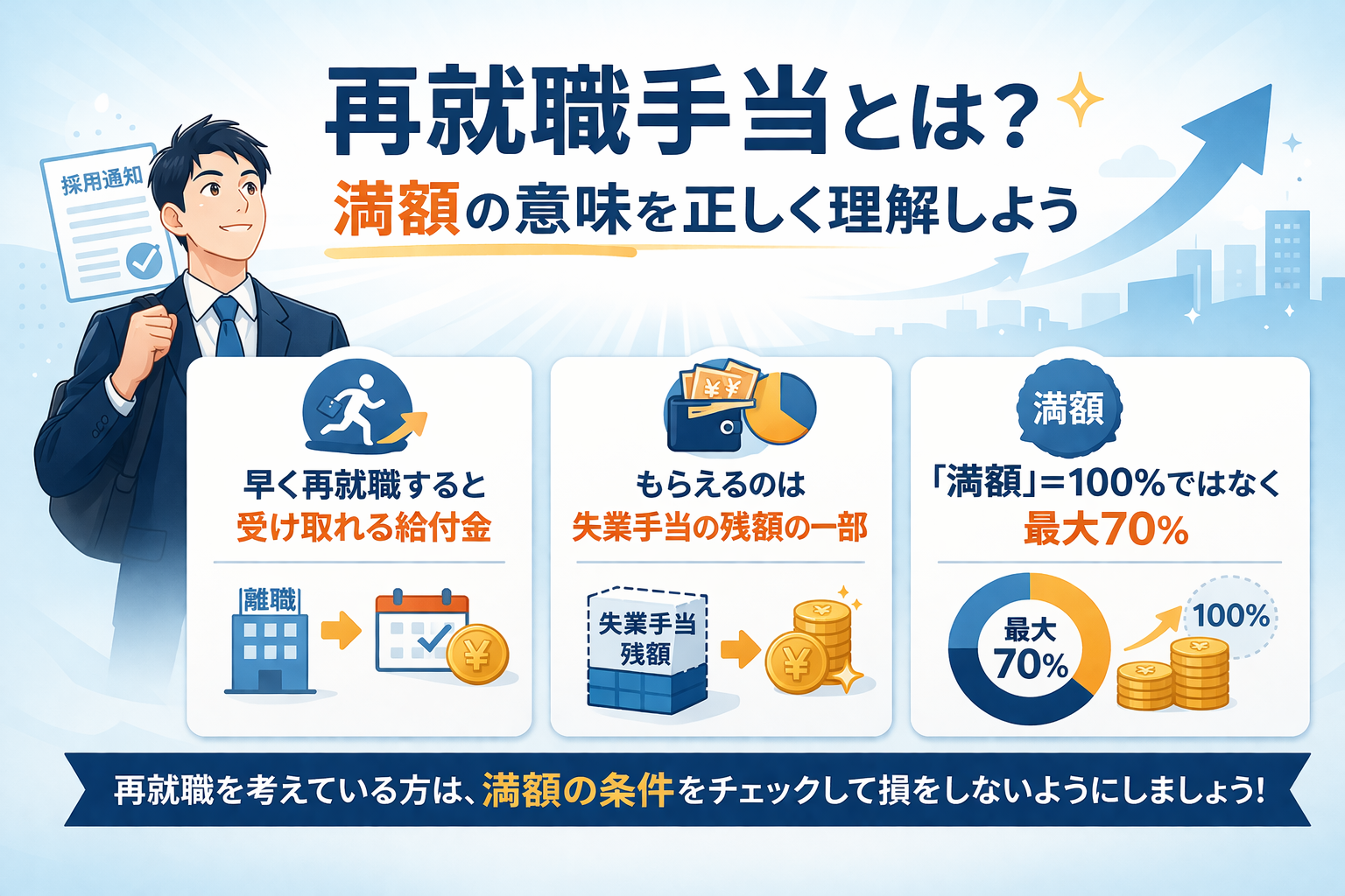 再就職手当を満額もらうためのポイントを整理します。