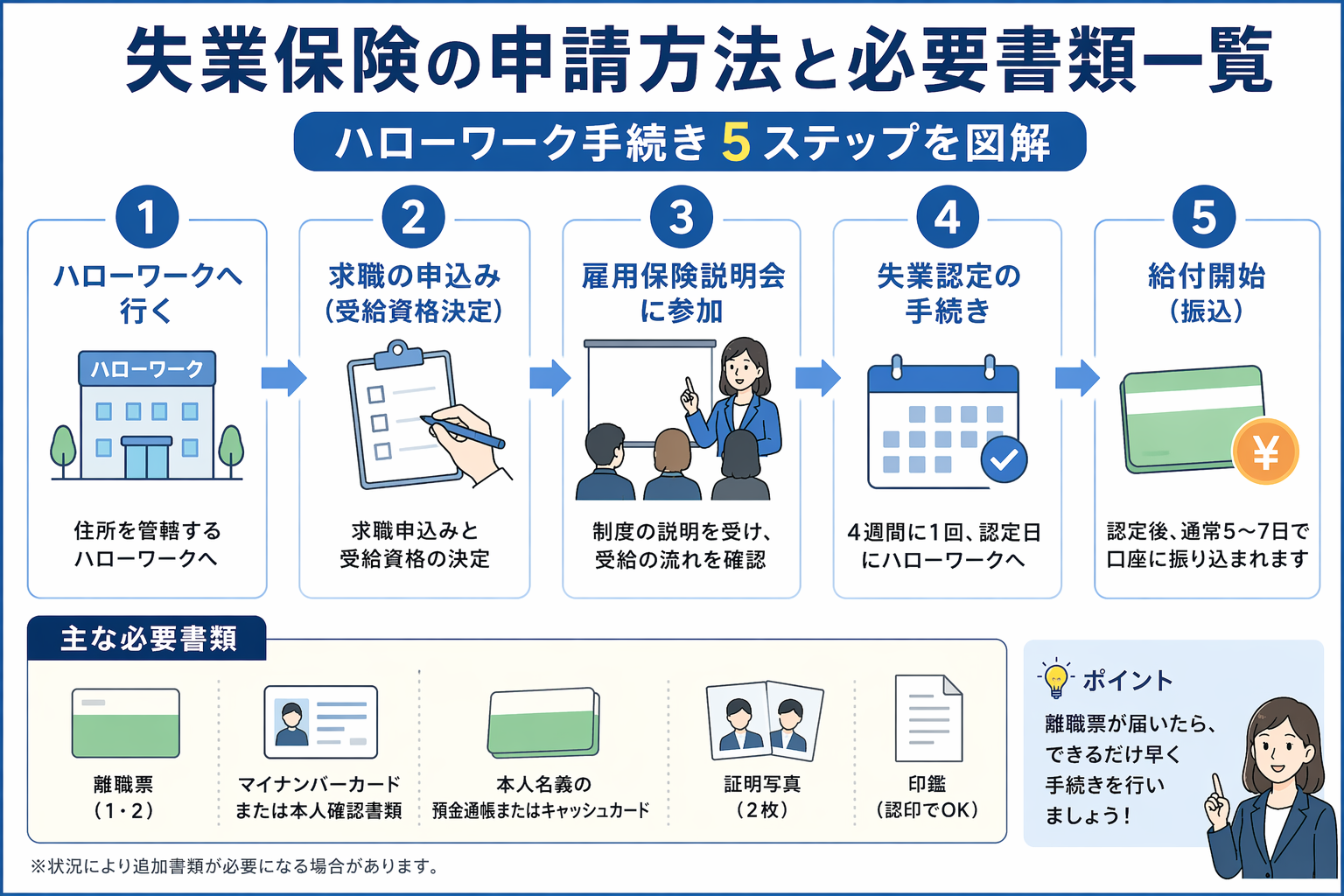• 手続きの第一歩:離職票を受け取ったら、すぐにハローワークへ