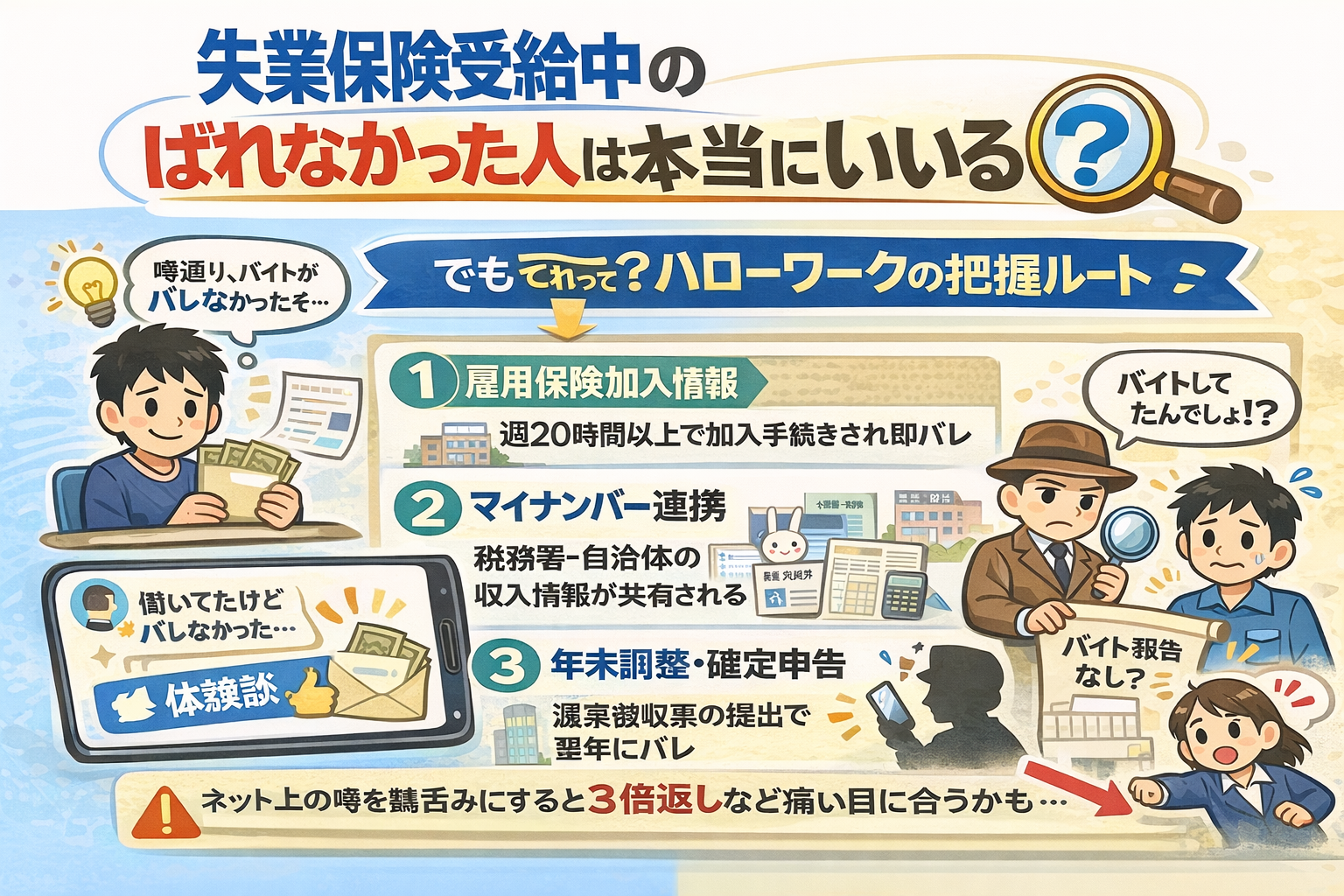 ネット上には「失業保険受給中にバイトしたけどバレなかった」という体験談が多く出回っています。しかし、これは非常に危険な考え方です。