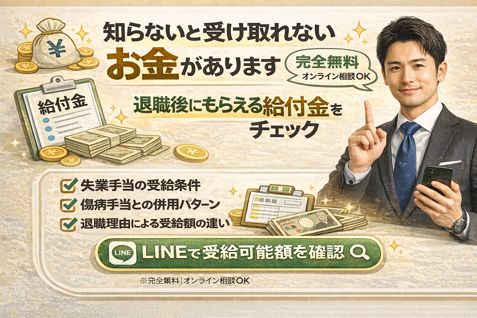 また、失業手当の受給額は退職理由・年齢・勤続年数によって大きく変わります。「自分がいくらもらえるか」をまだ確認していない方は、下記のシミュレーションや無料LINE相談をぜひ活用してください。