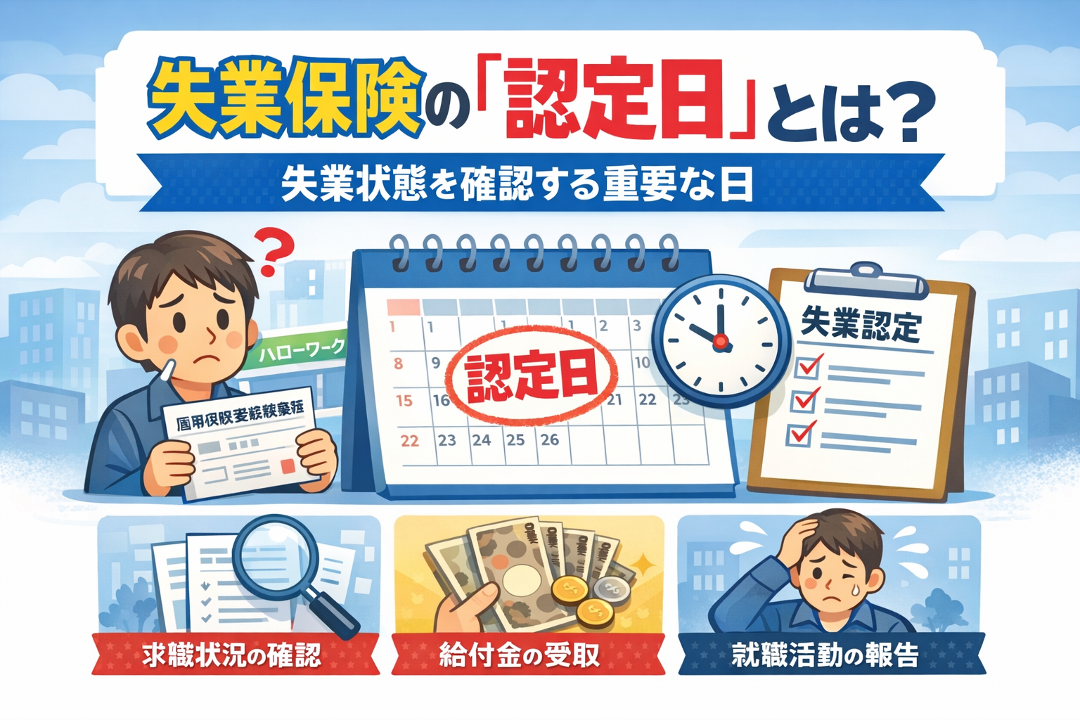この記事では、認定日の基本的な仕組みから、当日の流れ・持ち物・求職活動の実績作り・行けなかった場合の対処法まで、サジェストで多く検索される疑問をすべて網羅して解説します。