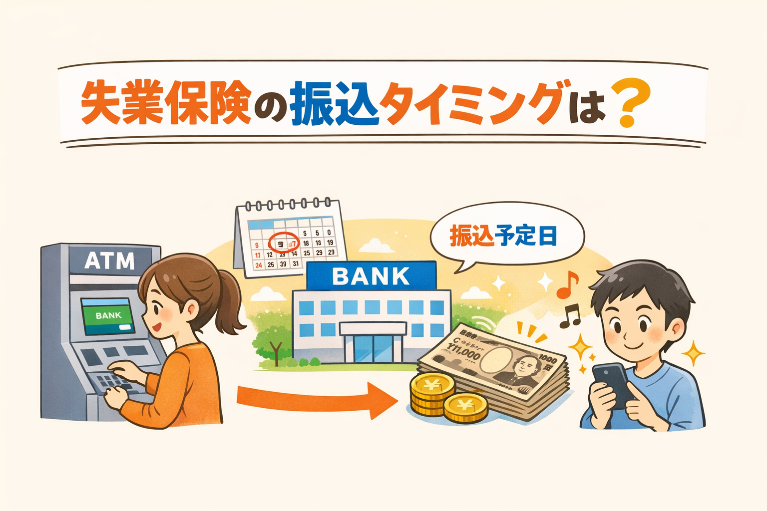 失業手当は、認定日から通常2〜5営業日後に指定口座へ振り込まれます。多くの場合、認定日から1週間以内には着金します。