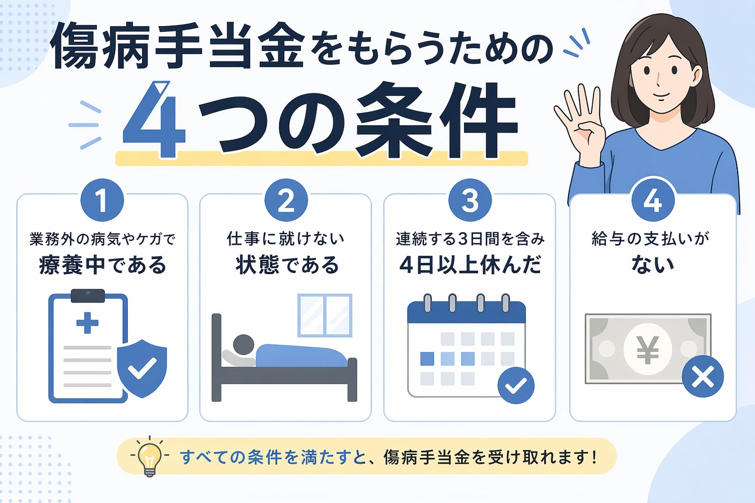 傷病手当金をもらうための「4つの条件」