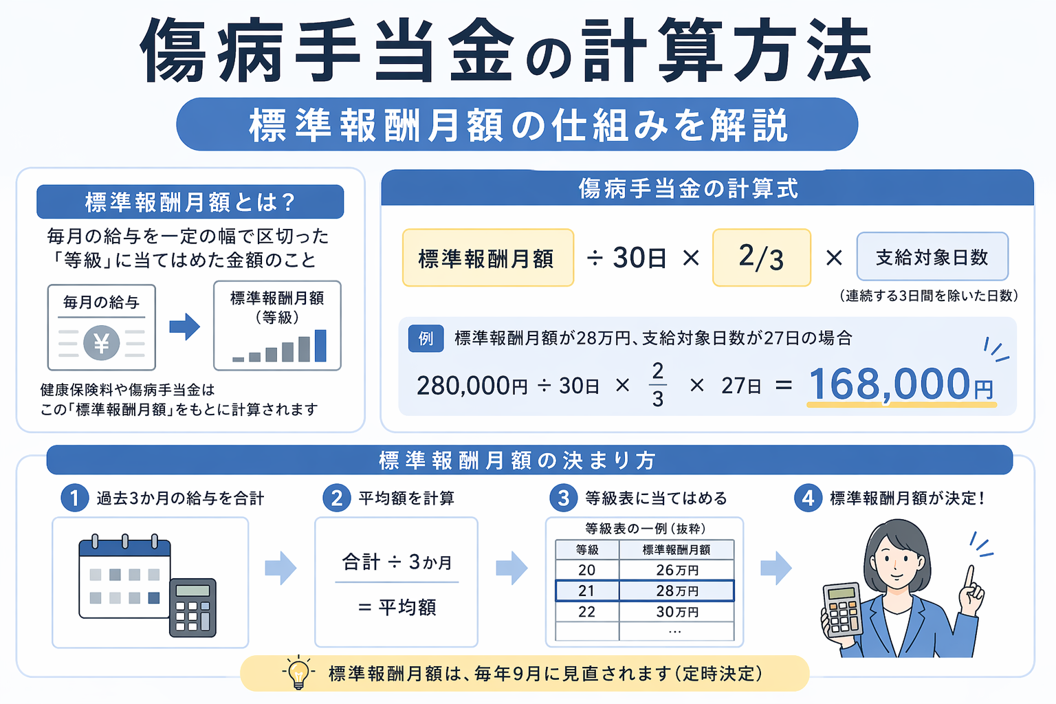 傷病手当金の計算方法|標準報酬月額の仕組みを解説