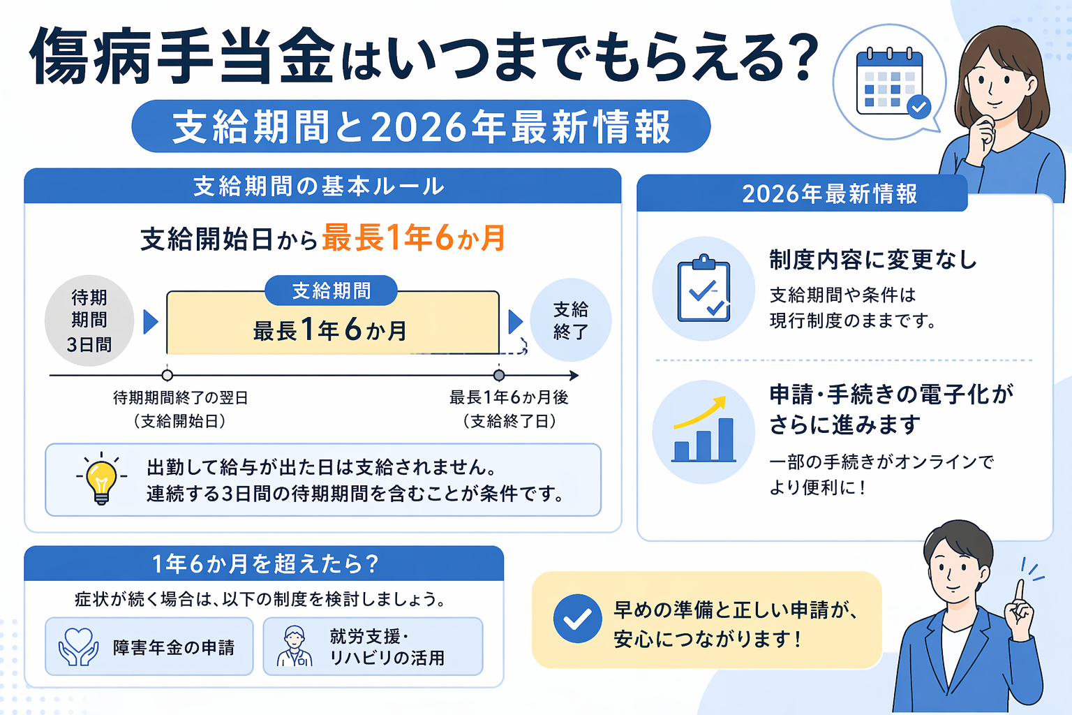 傷病手当金はいつまでもらえる?支給期間と2026年最新情報