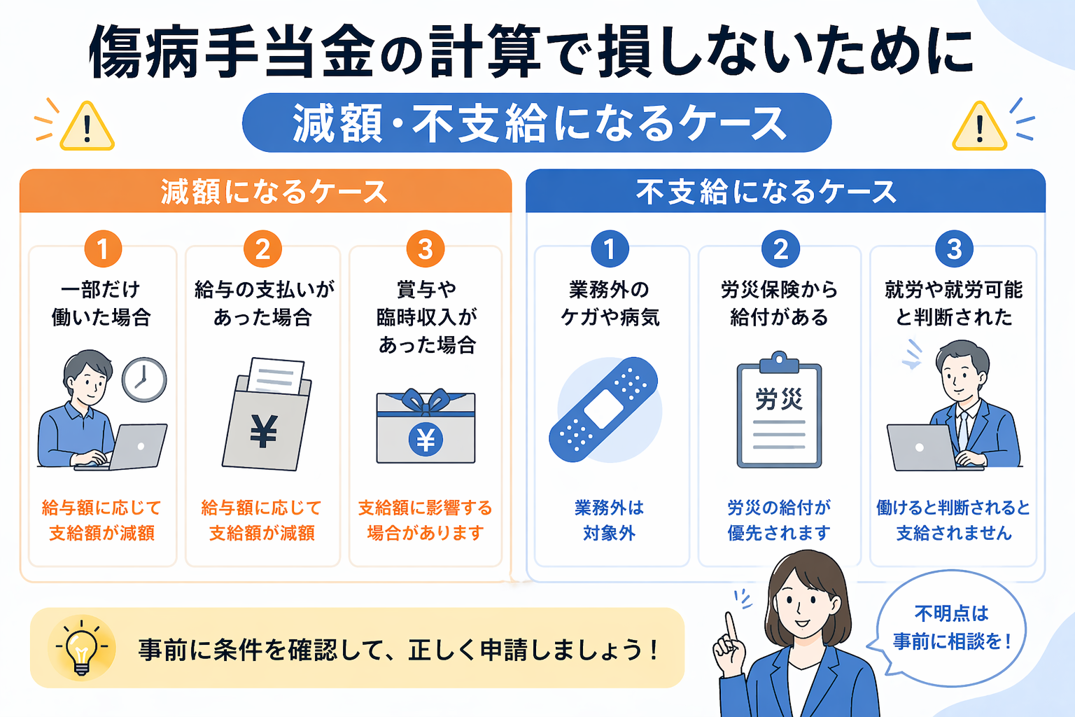 傷病手当金の計算で損しないために|減額・不支給になるケース