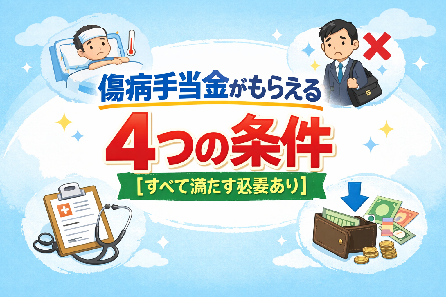 傷病手当金がもらえる4つの条件【すべて満たす必要あり】