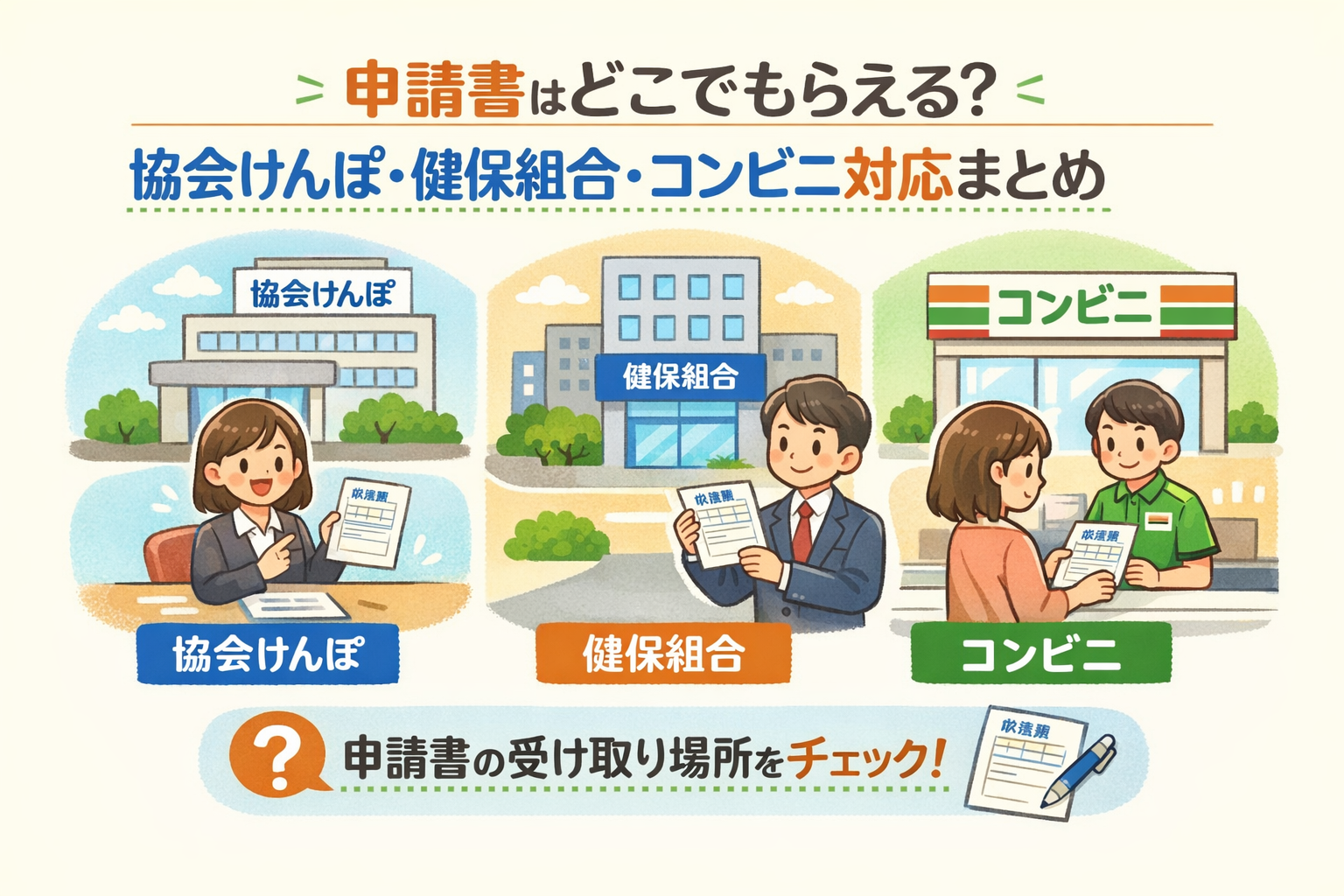申請書はどこでもらえる?協会けんぽ・健保組合・コンビニ対応まとめ