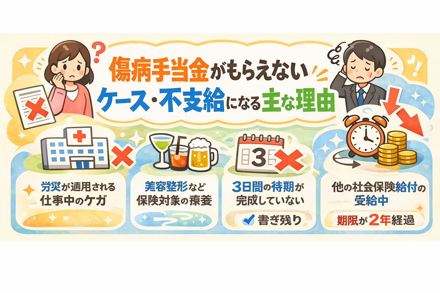 Q. 傷病手当金ともらえないケースにはどんなものがありますか?