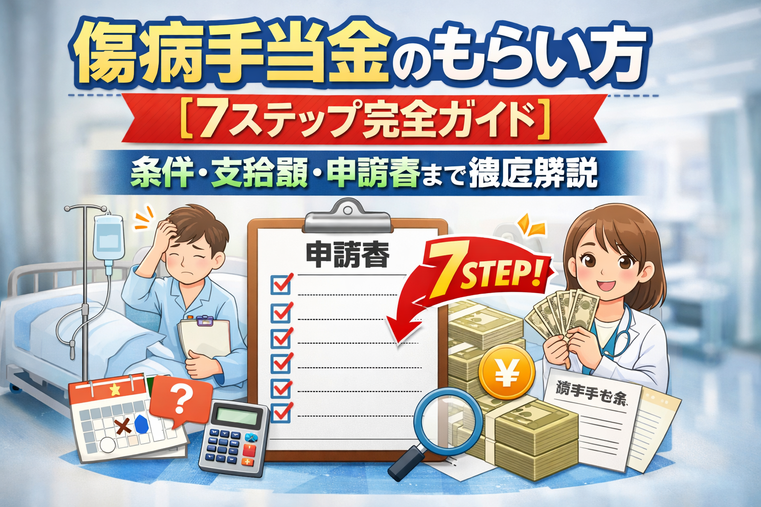 この記事では、傷病手当金のもらい方を申請書の入手方法から振込まで7ステップで完全解説。もらえる条件・計算方法・退職後の手続き・よくある不支給ケースまで、あなたの疑問をすべて解決します。