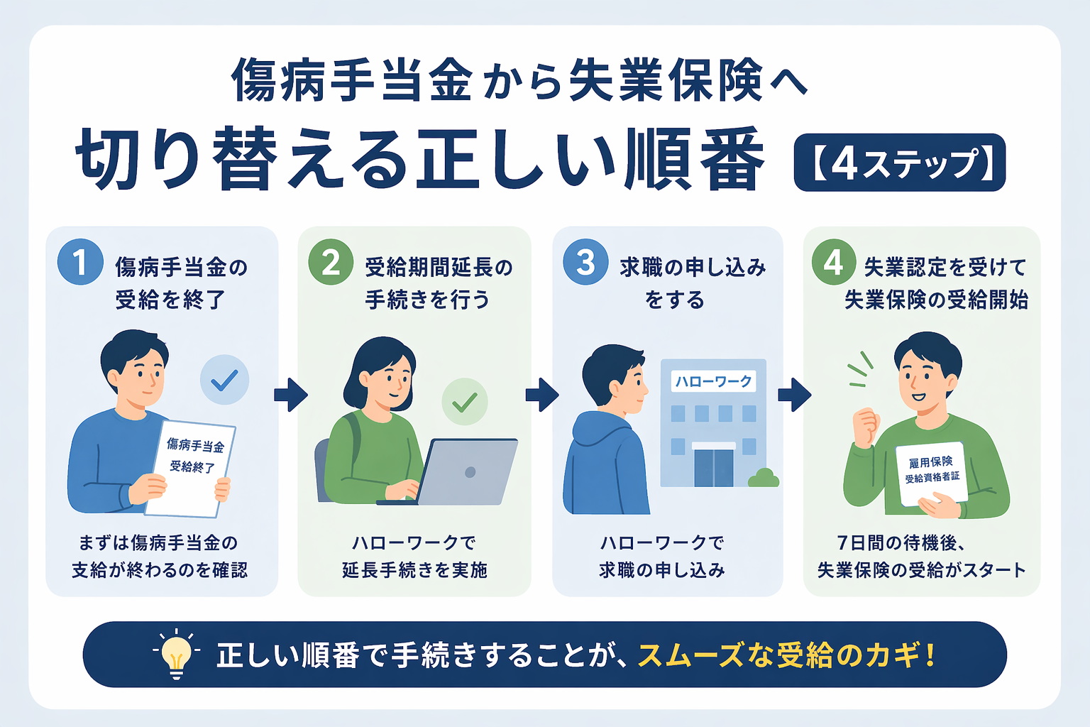 傷病手当金から失業保険へ切り替える正しい順番【4ステップ】