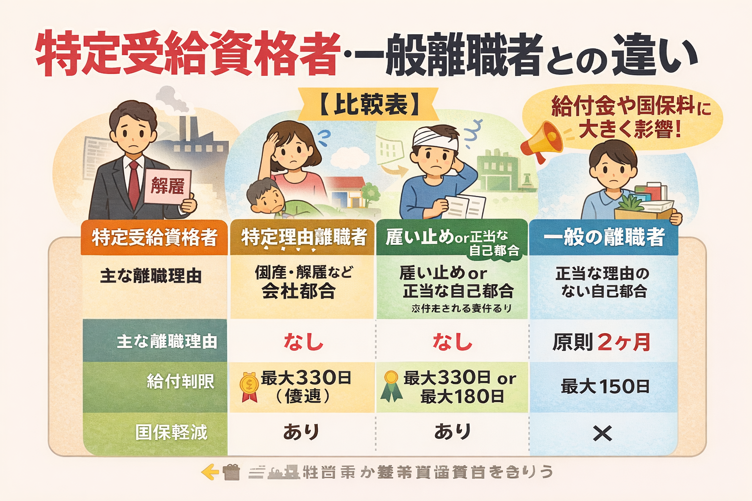 特定受給資格者・一般離職者との違い【比較表】