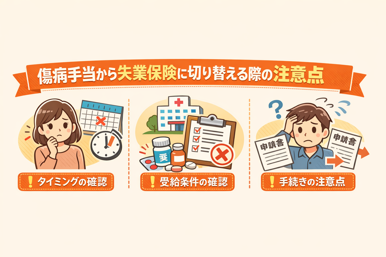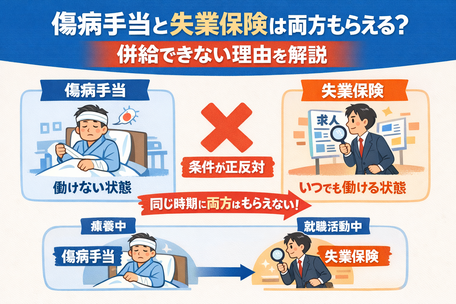 傷病手当と失業保険は両方もらえる?併給不可の理由と正しい切り替え方を解説