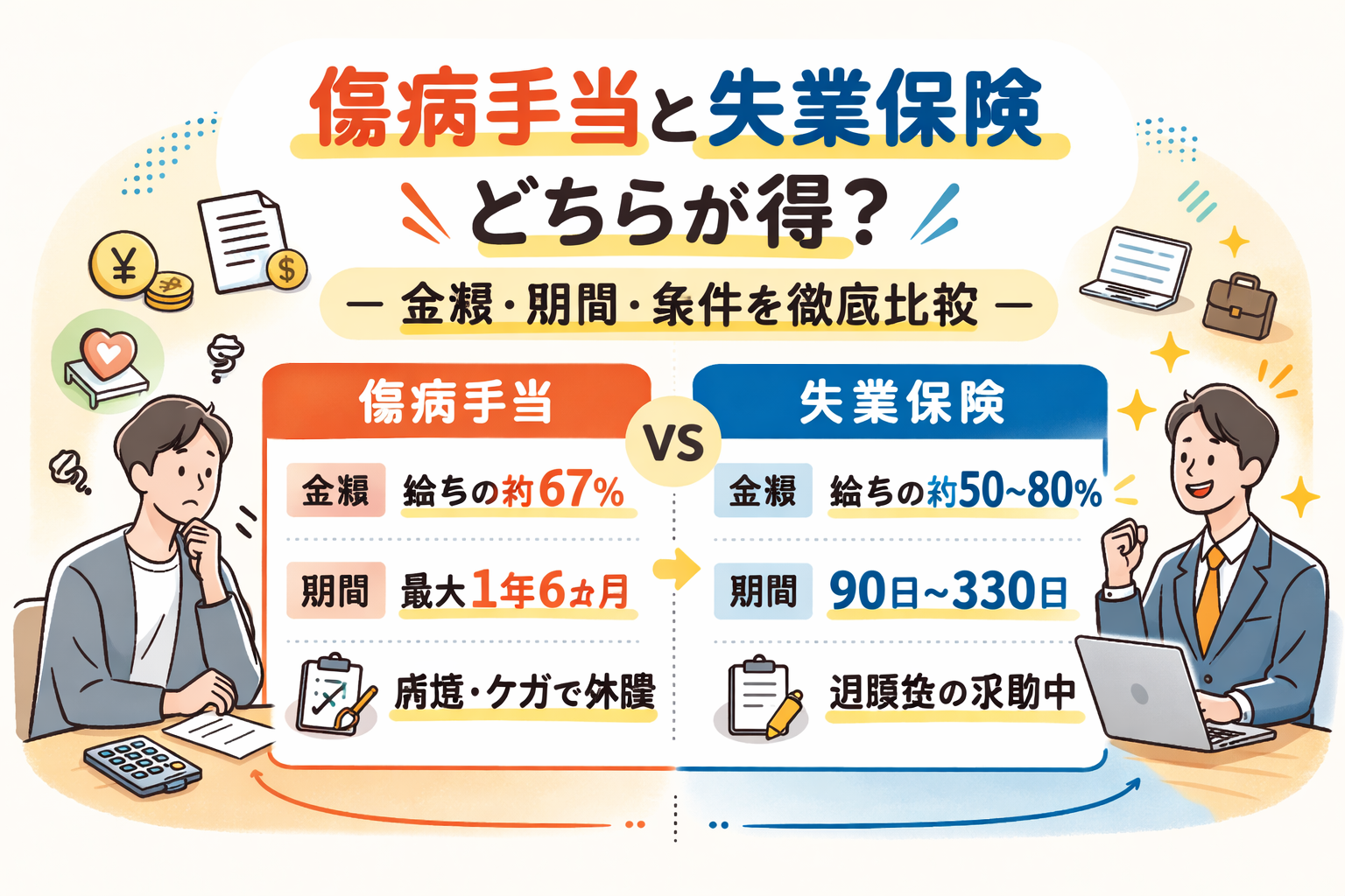 傷病手当と失業保険はどちらが得?金額・期間・条件を徹底比較