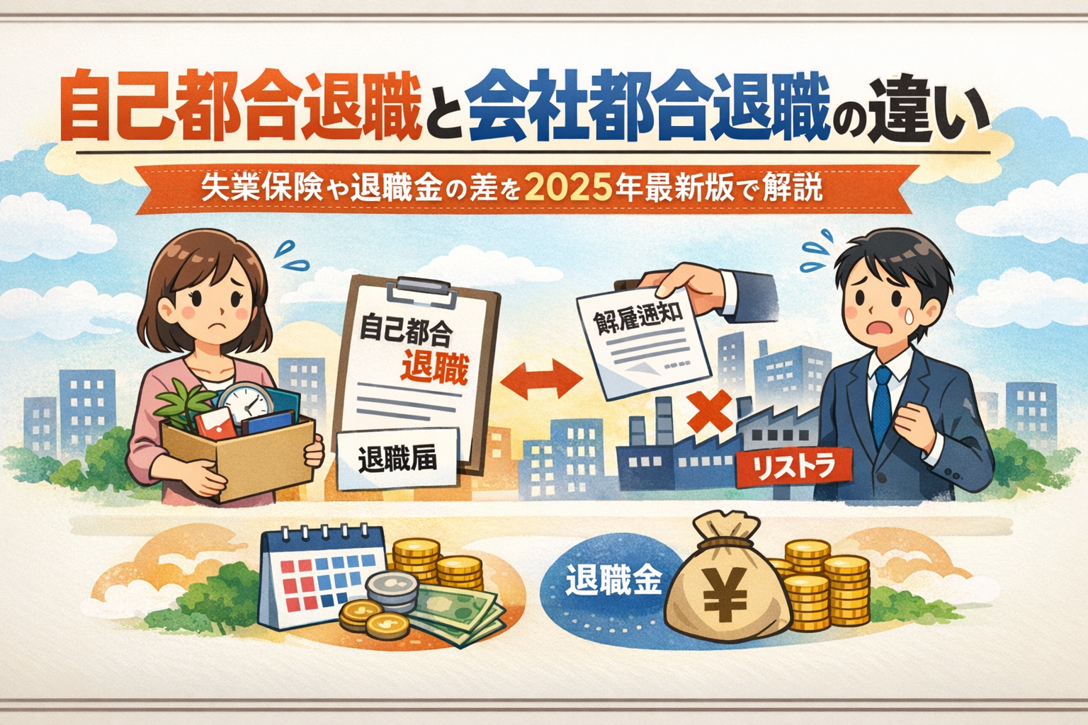 この記事では、自己都合退職と会社都合退職の違いを、失業保険・退職金・転職への影響・手続き方法まで徹底解説します。損をせず、納得感のある再出発を切るための完全ガイドとしてご活用ください。